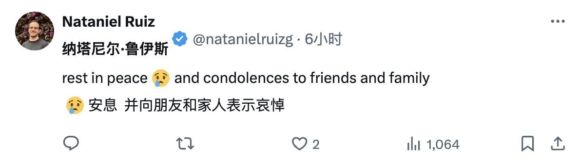 Udio CEO 联合创始人 David Ding、Google 高级研究科学家 Nataniel Ruiz、Meta 及 OpenAI 等多位研究科学家也纷纷发文表达哀思。